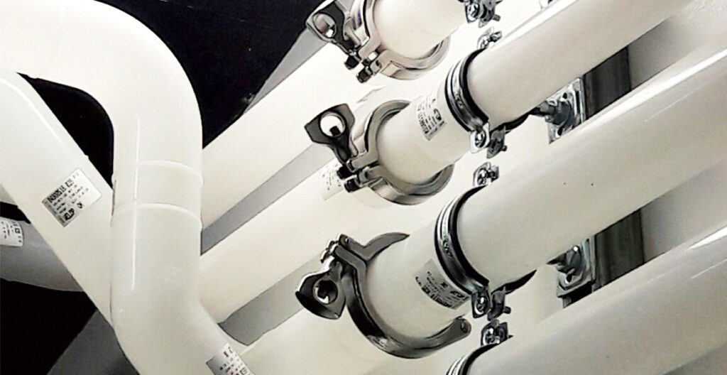 Efter en grundig gennemgang af de kritiske medier og driftsforhold, anbefalede GPA, at anvende et ECTFE rørsystem og membranventilløsninger til applikationen. Selve rørinstallationen blev samlet med infrarød svejsning og udført af Wicotec Kirkebjerg A/S, som inden projektstart fik et certificerende svejsekursus i IR-svejsning hos GPA Flowsystem.